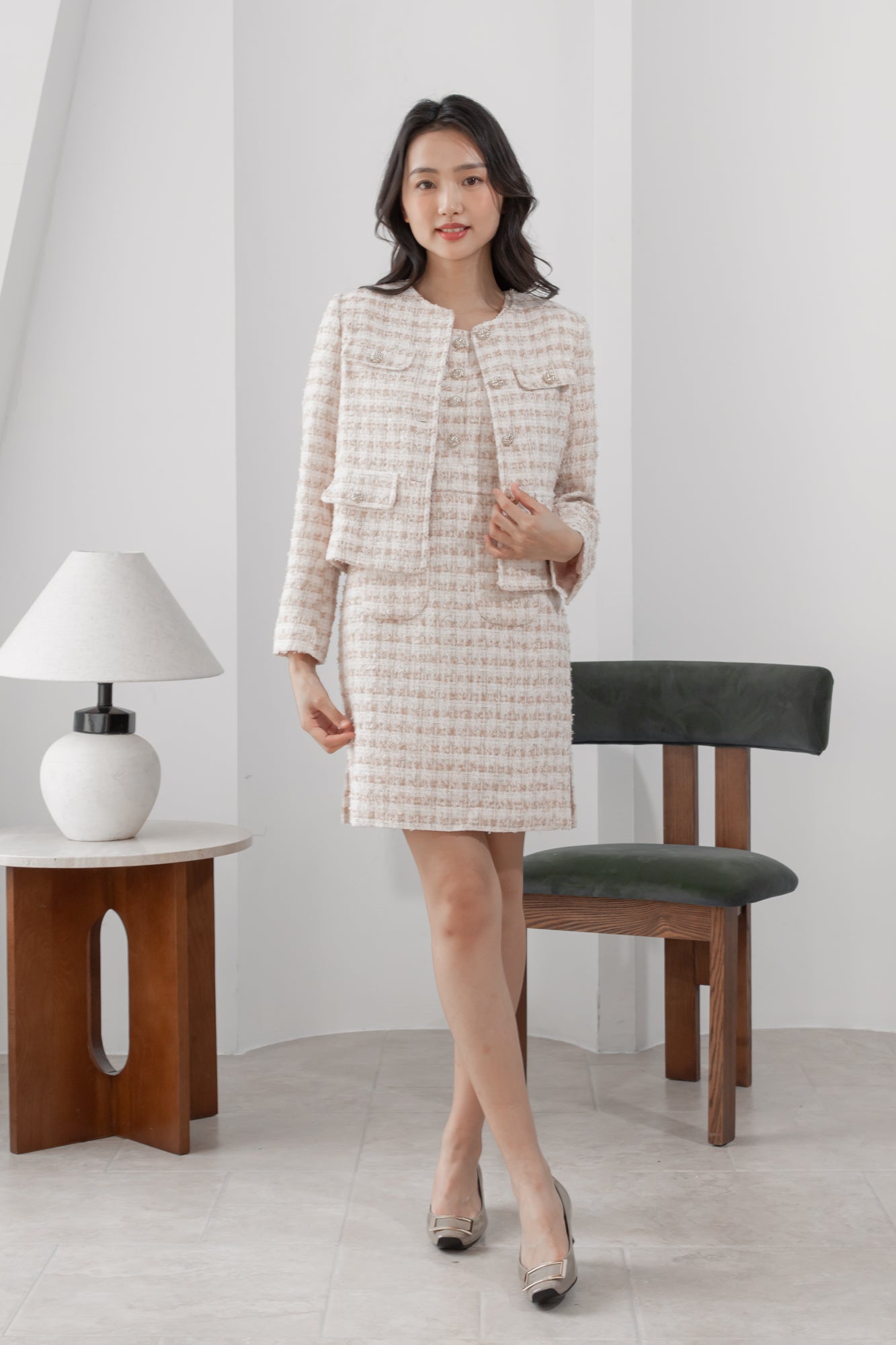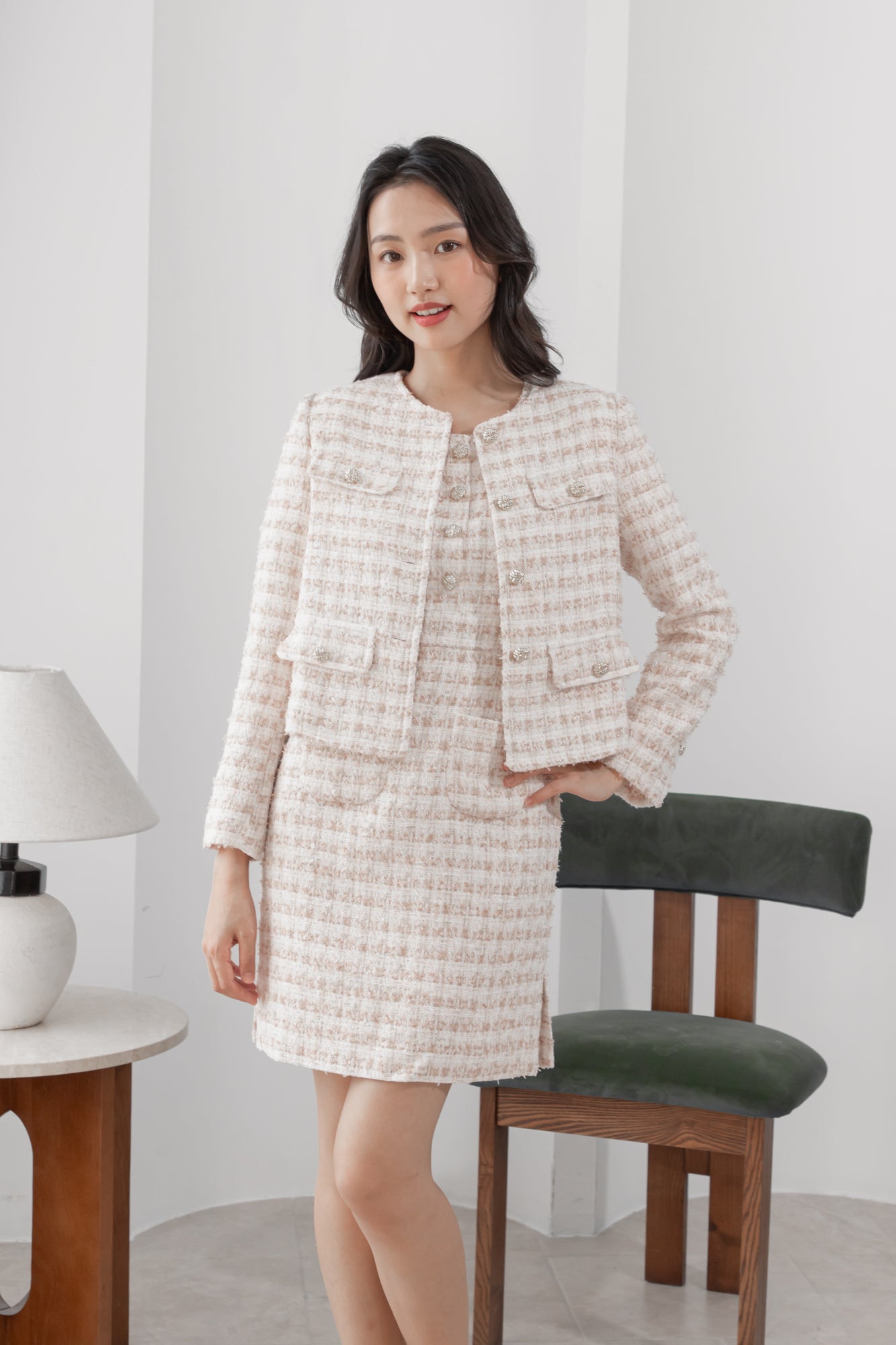Anna flaps pink tweed jacket