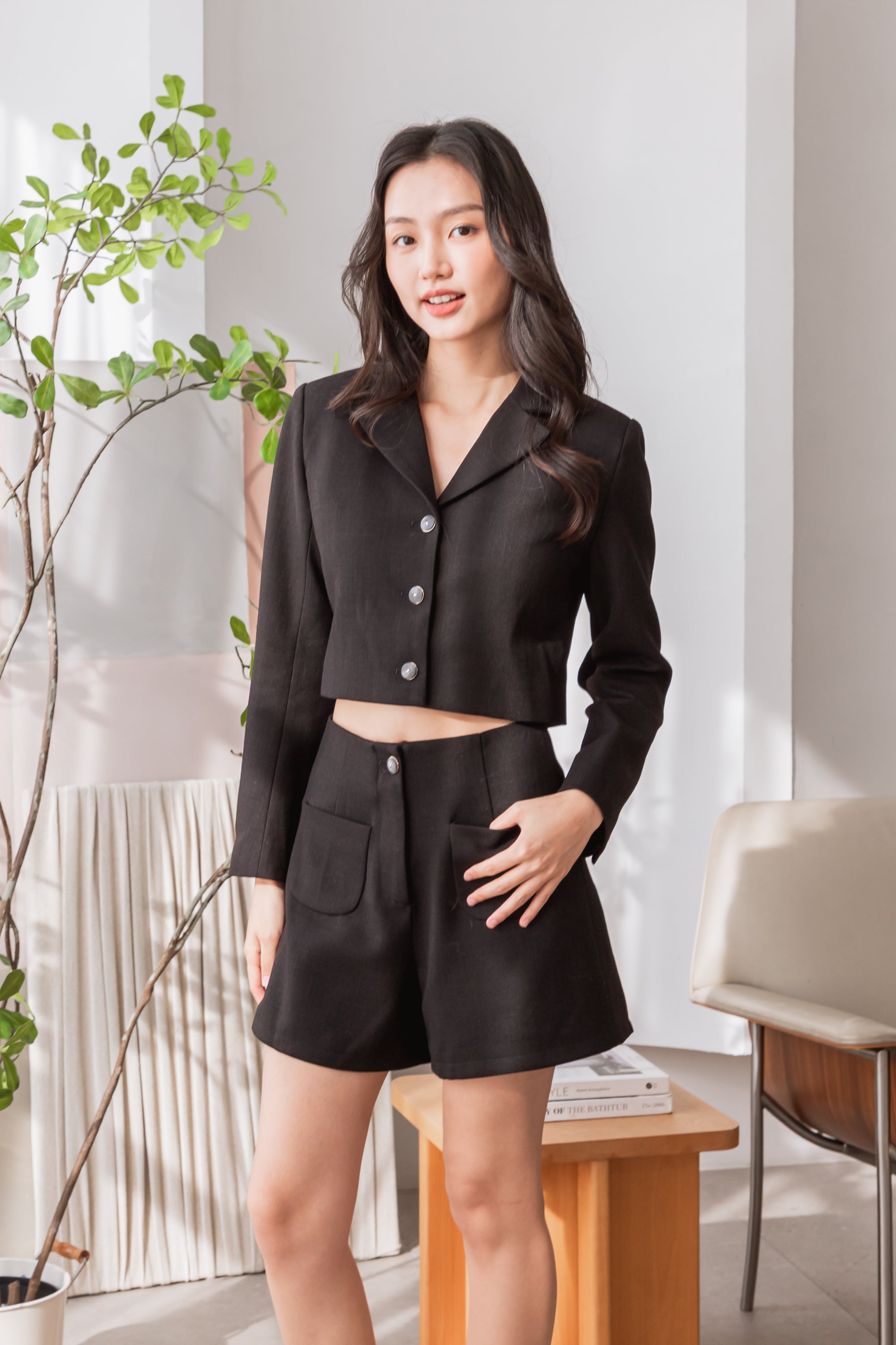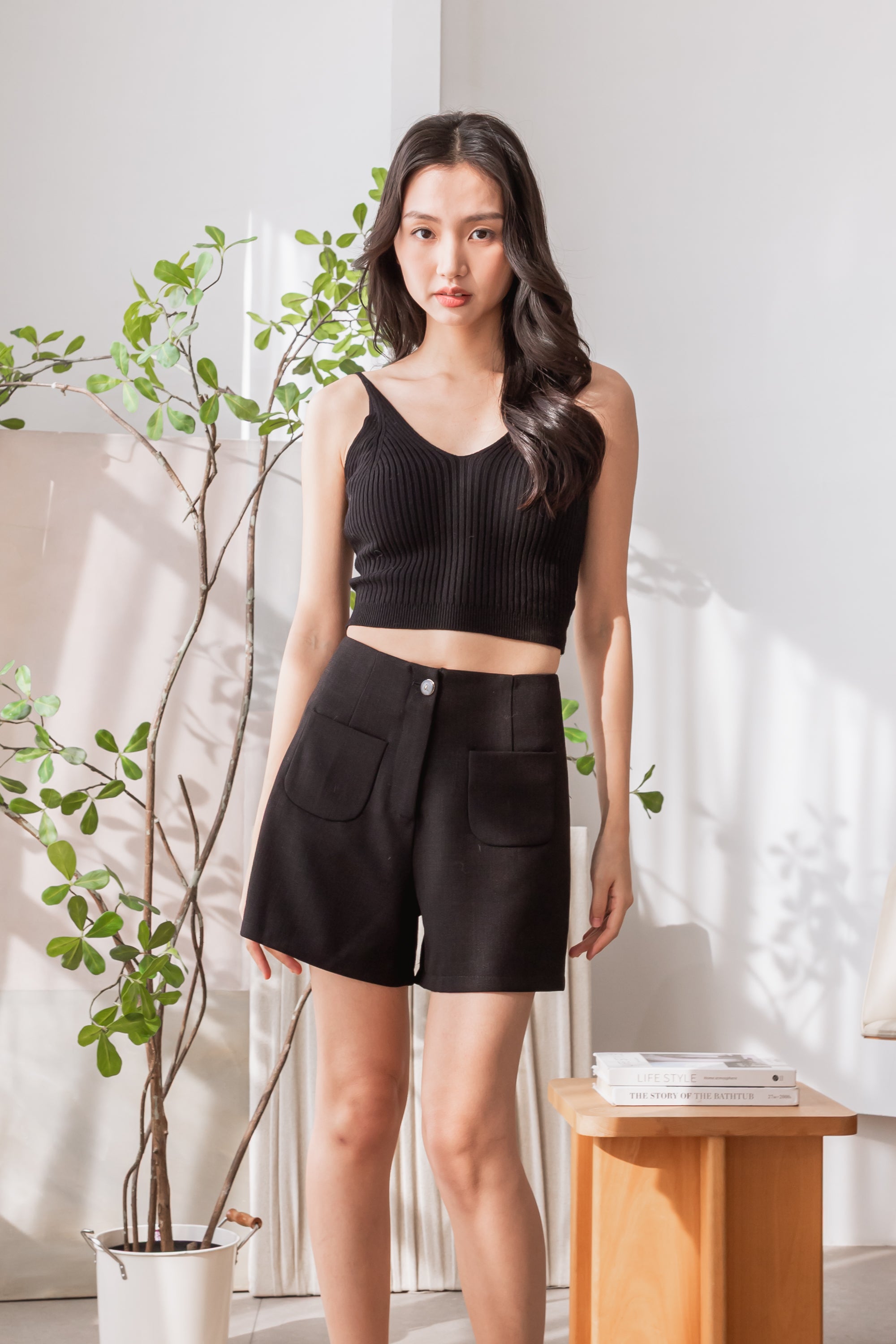 Gavin black patched pocket short pants