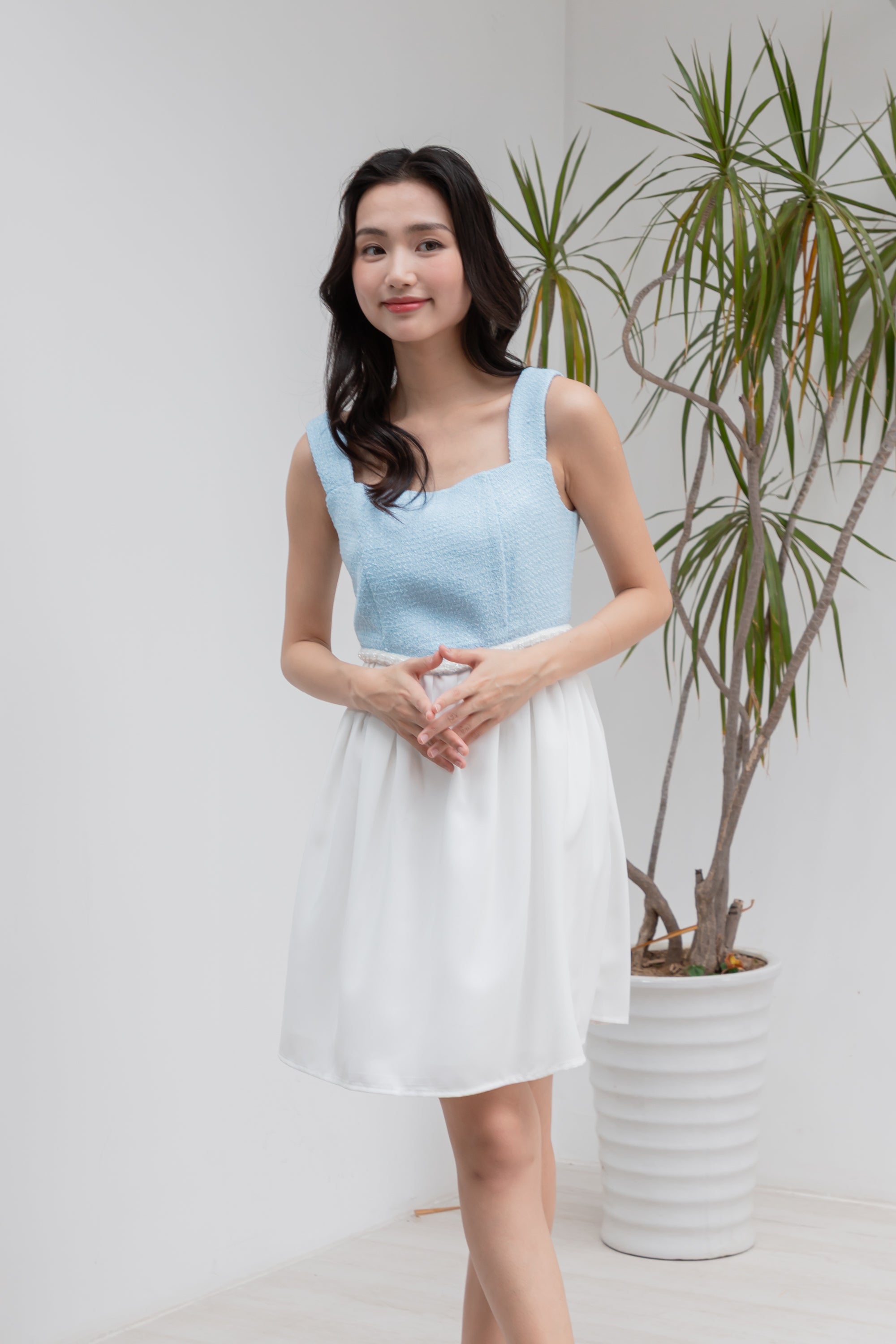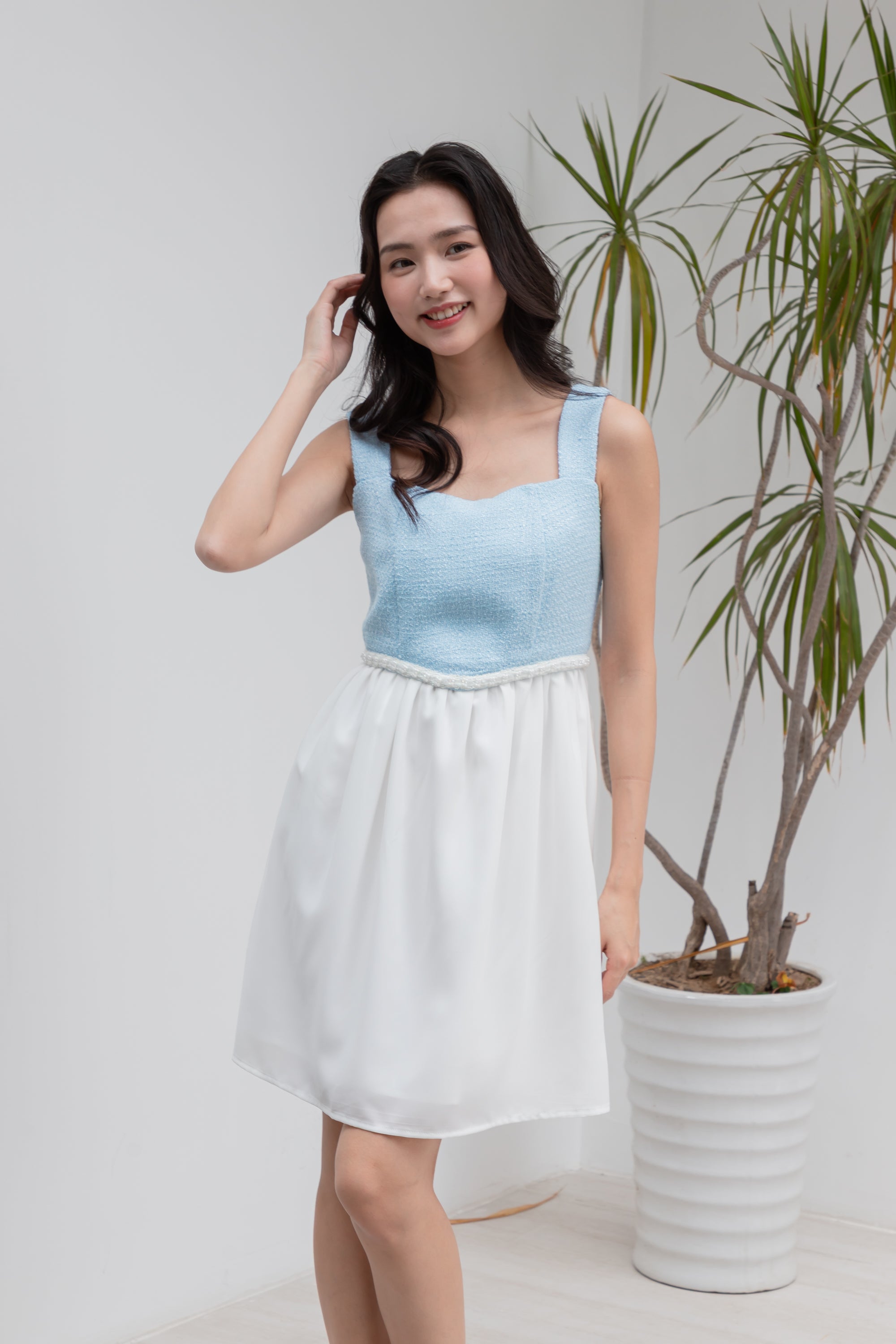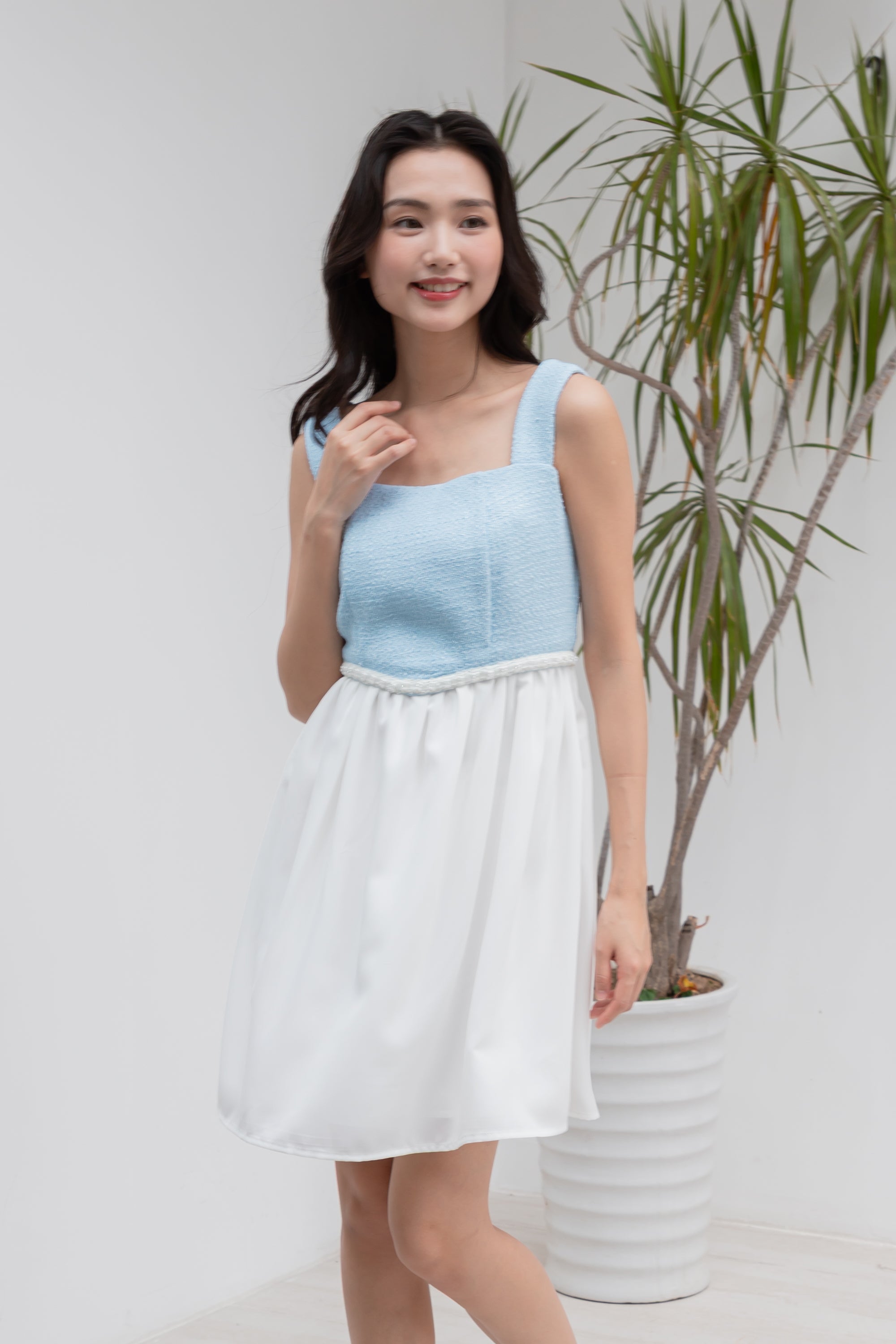 Anna blue and white tweed dress