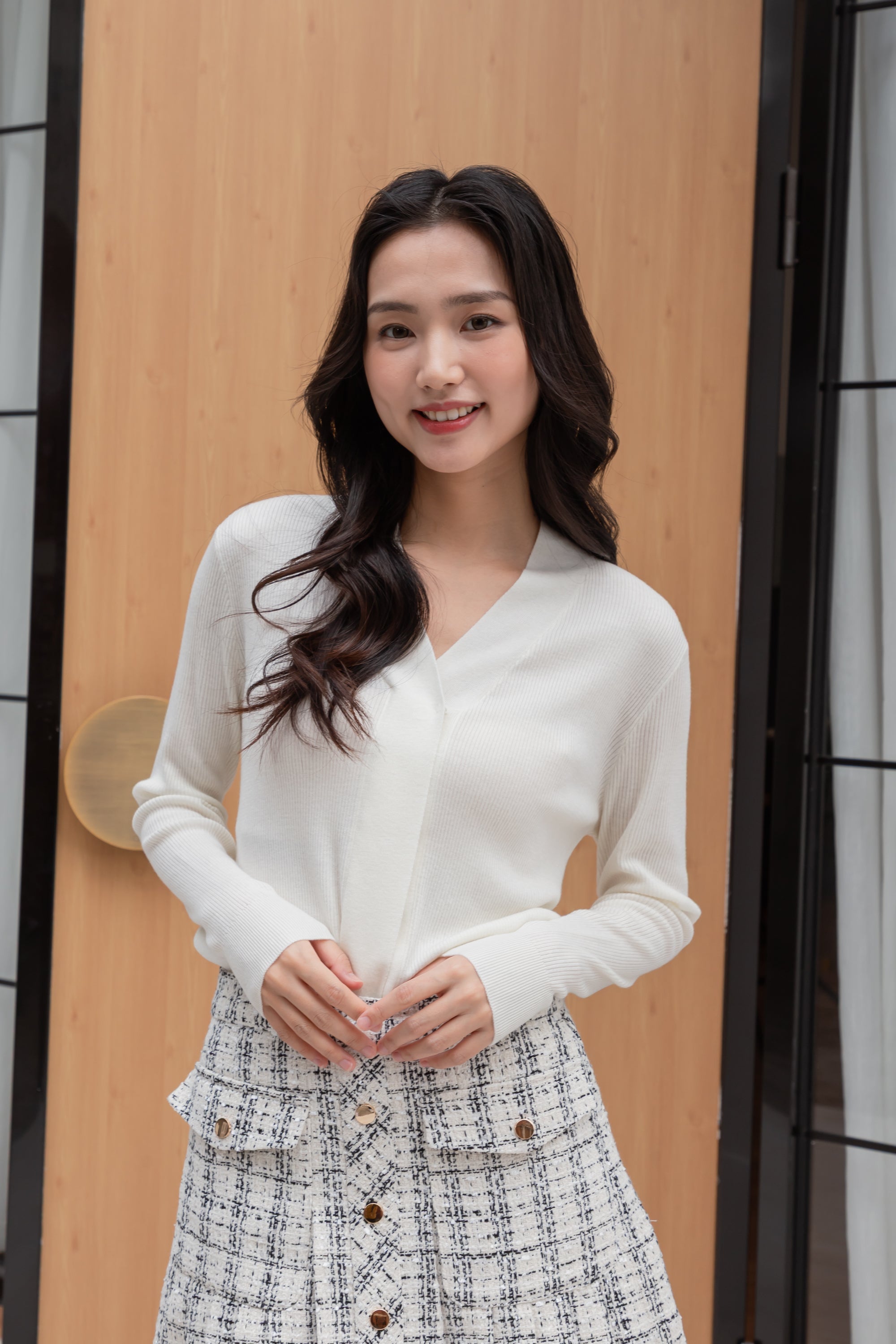 Anna white v-neck wool top